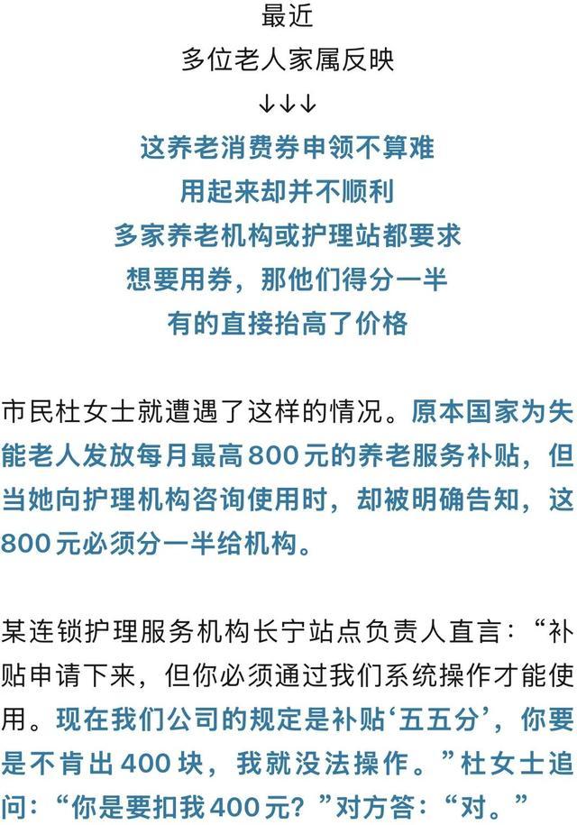 某连锁护理服务机构长宁站点负责人称:“工作量增加了,800元补贴还得我们先垫付。核销后,政府往往要两三个月后才拨款。为了管理消费券,我们还专门多请了一个人,以前不需要。多一个人,就要多发工资、缴五险一金,这些都是成本。”